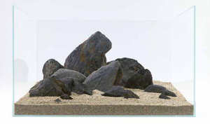Dark Blue Sky Rock wordt vaak gebruikt in aquascapes waar diepte en contrast centraal staan. In combinatie met lichte bodems of frisgroene planten komen de blauwgrijze tinten sterk naar voren. Door meerdere stenen uit één doos te combineren ontstaat een samenhangend en rustig landschap met natuurlijke hoogteverschillen.