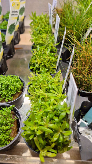 Pogostemon Helferi, ook bekend als Downoi, is een compacte plant met gekrulde bladeren die een weelderige groene uitstraling hebben. De bladeren groeien in rozetvormige clusters en creëren zo een prachtig dicht tapijt op de bodem van uw aquarium. Het unieke kenmerk van de bladeren is hun golvende textuur, waardoor ze een speels en levendig karakter krijgen.